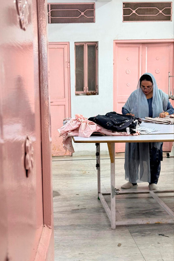 La estampación es un arte que llevamos a cabo con una atención meticulosa. Desde la alineación precisa de los diseños hasta el uso de técnicas tradicionales de la India, cuidamos cada detalle para lograr acabados impecables que reflejen la excelencia artesanal de Maitane Bilbao.