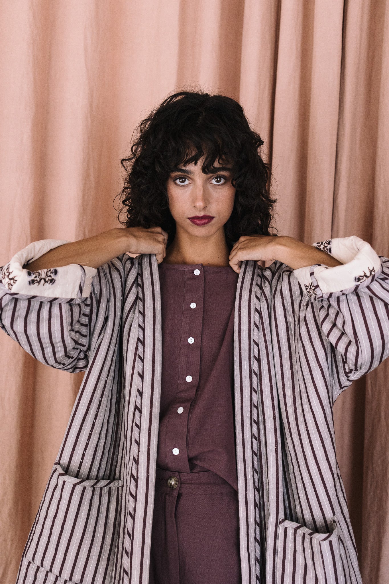 La estampación es un arte que llevamos a cabo con una atención meticulosa. Desde la alineación precisa de los diseños hasta el uso de técnicas tradicionales de la India, cuidamos cada detalle para lograr acabados impecables que reflejen la excelencia artesanal de Maitane Bilbao.
