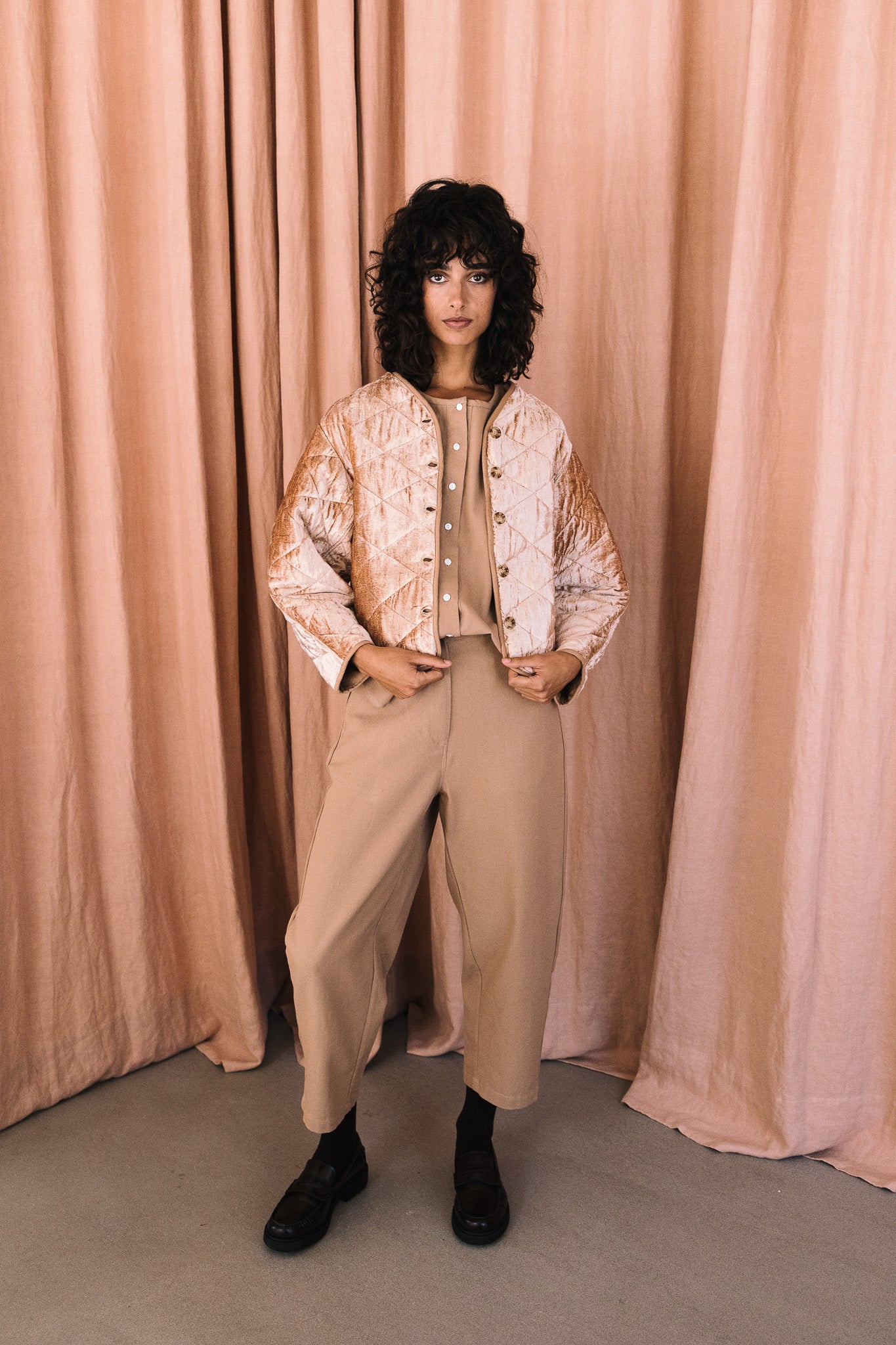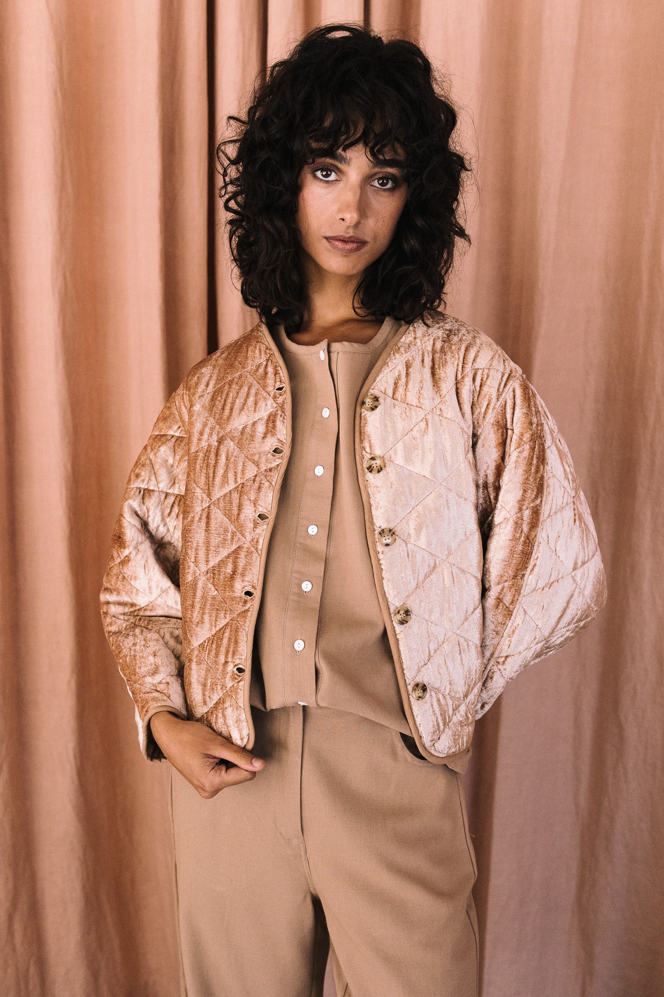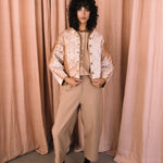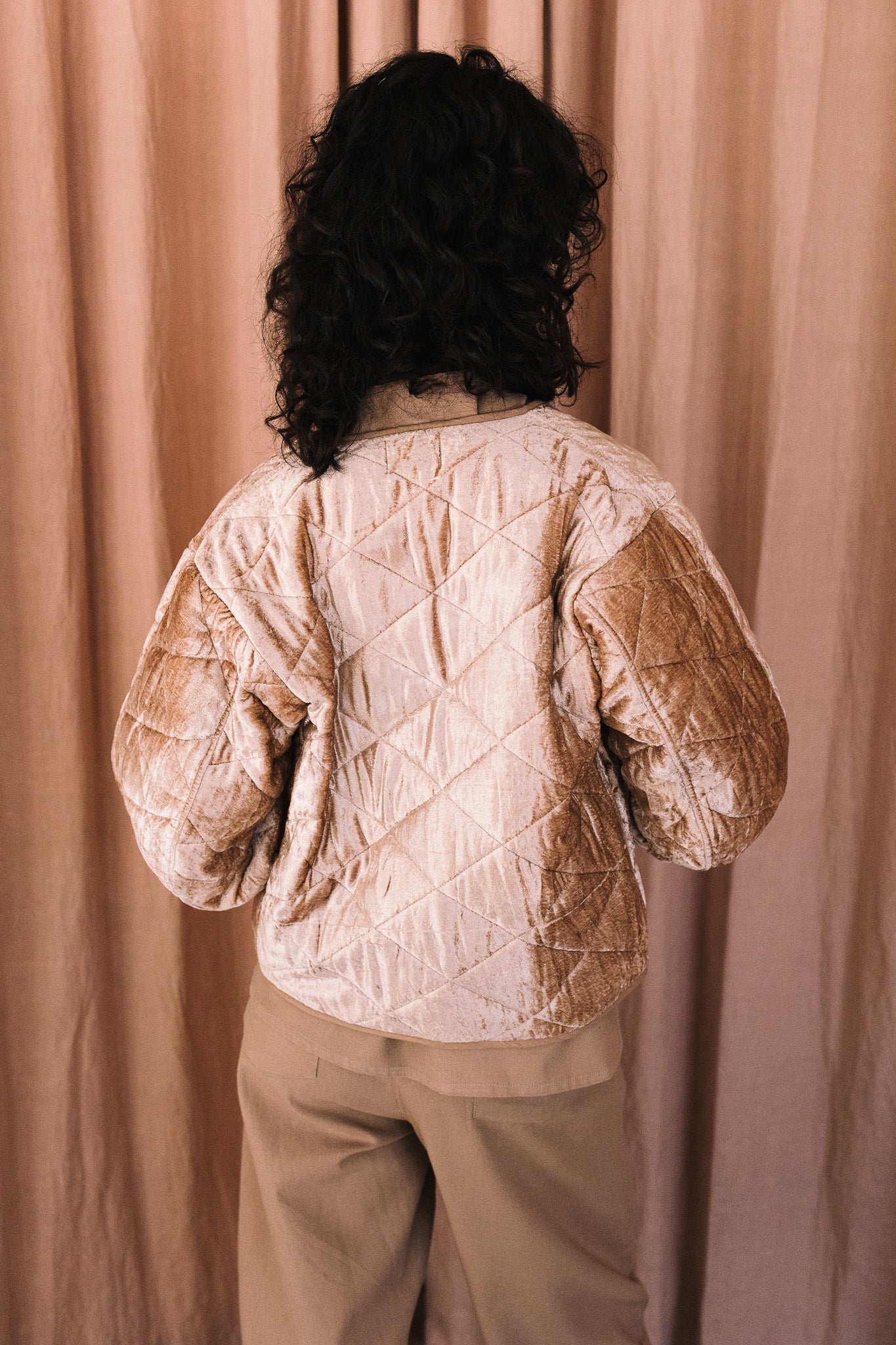 Chaqueta 100% terciopelo, tejido cuidadosamente seleccionado y con estampado realizado a mano. Perteneciente a la Colección "Autumn-Winter 25"