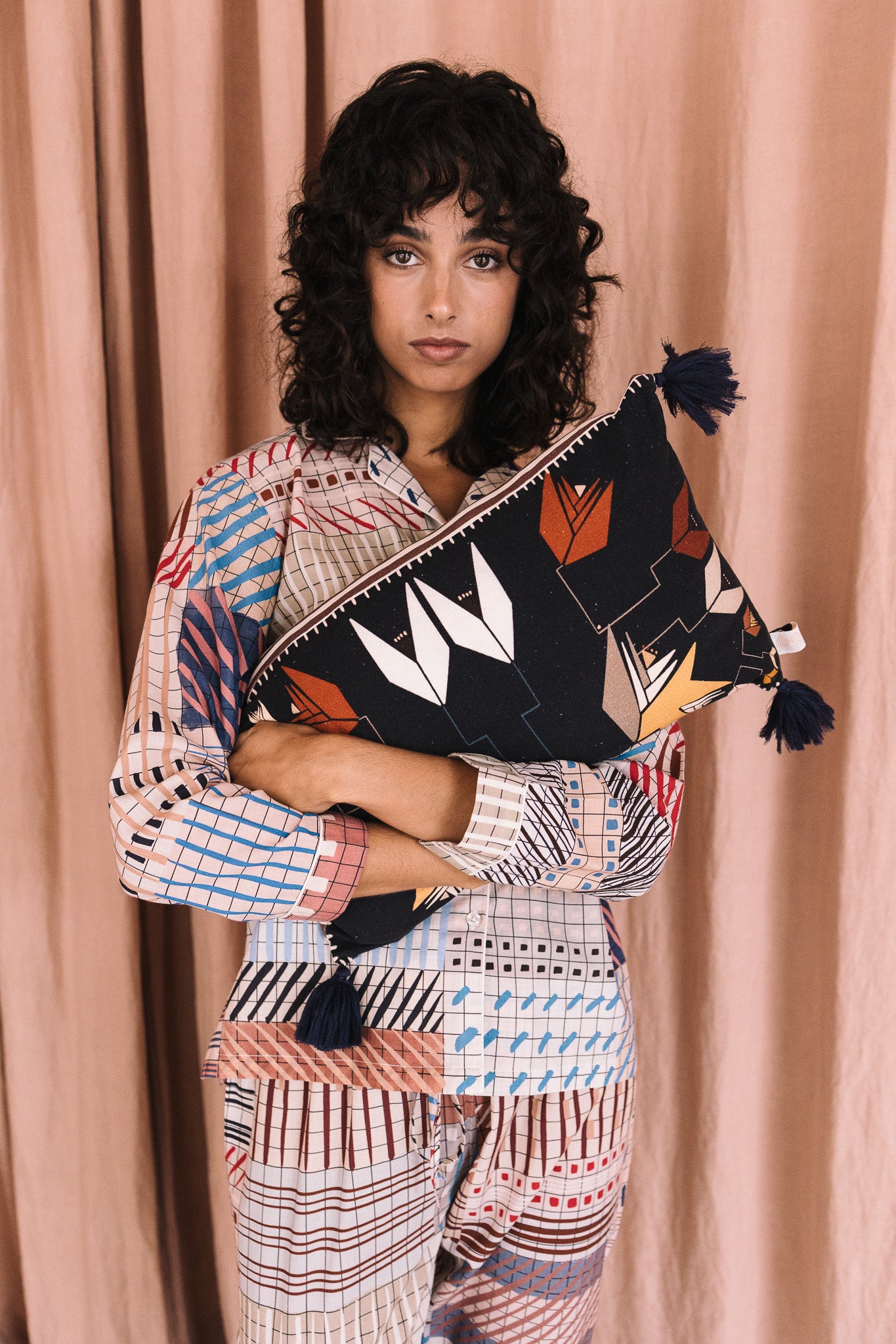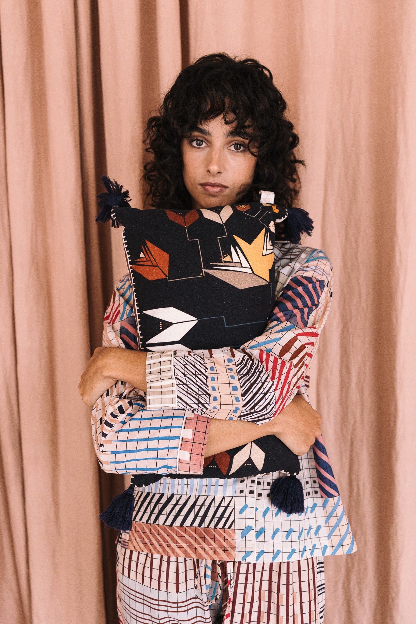 Cojín 100% algodón Duck, tejido cuidadosamente seleccionado y con estampado realizado a mano. Perteneciente a la Colección "Autumn-Winter 25"