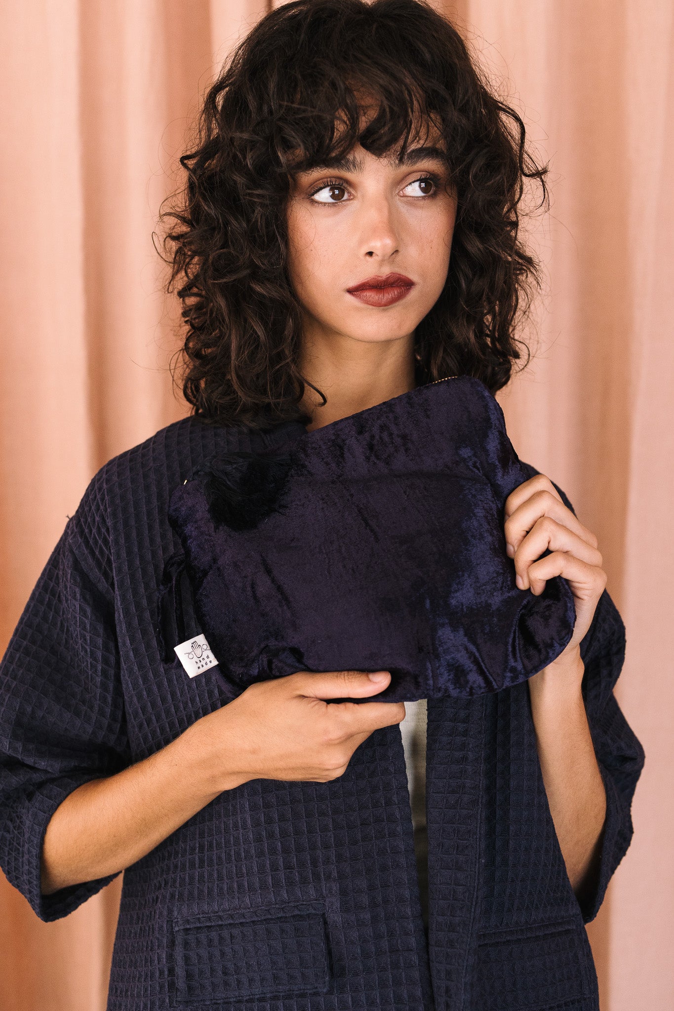 Bolso de mano 100% terciopelo, tejido cuidadosamente seleccionado y con estampado realizado a mano. Perteneciente a la Colección "Autumn-Winter 25"