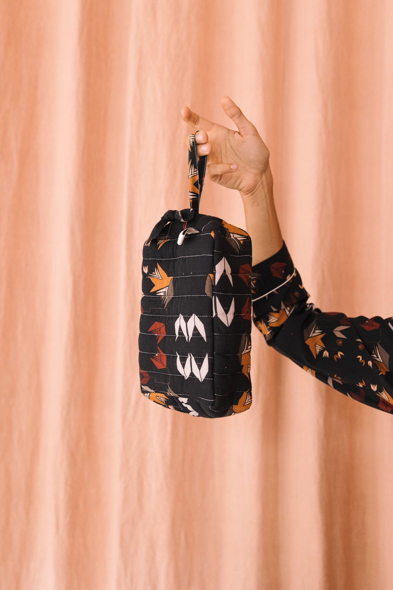 Neceser 100% algodón acolchado, tejido cuidadosamente seleccionado y con estampado realizado a mano. Perteneciente a la Colección "Autumn-Winter 25"