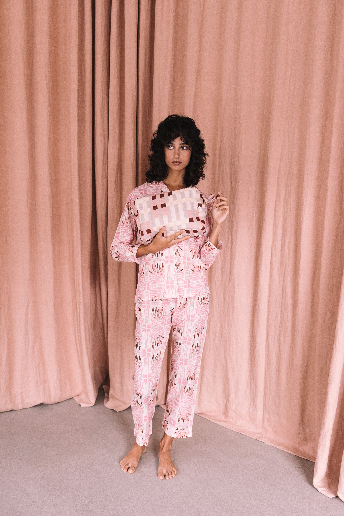 Neceser 100% algodón acolchado, tejido cuidadosamente seleccionado y con estampado realizado a mano. Perteneciente a la Colección "Autumn-Winter 25"