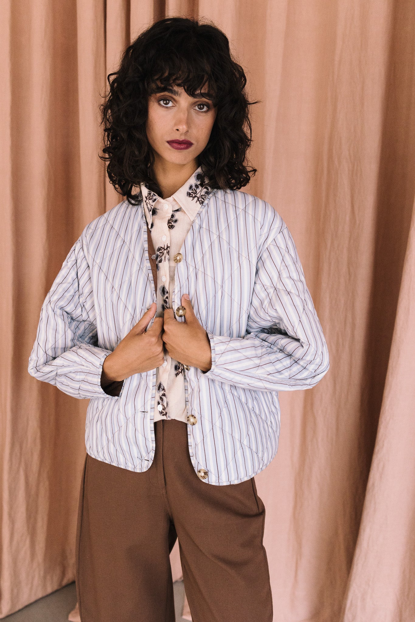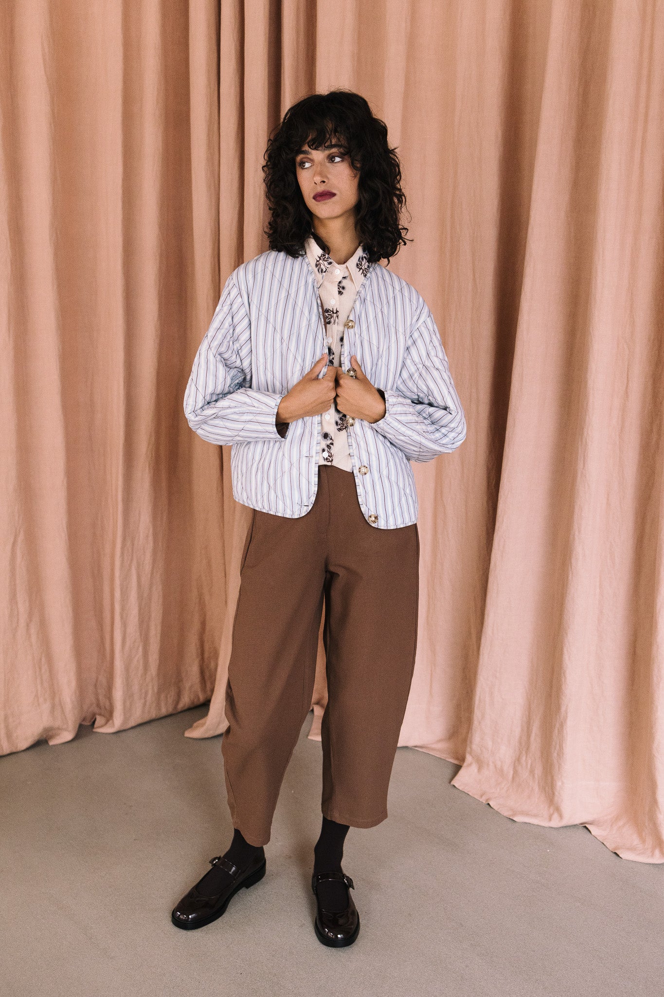 Chaqueta 100% algodón Popelín, tejido cuidadosamente seleccionado y con estampado realizado a mano. Perteneciente a la Colección "Autumn-Winter 25"