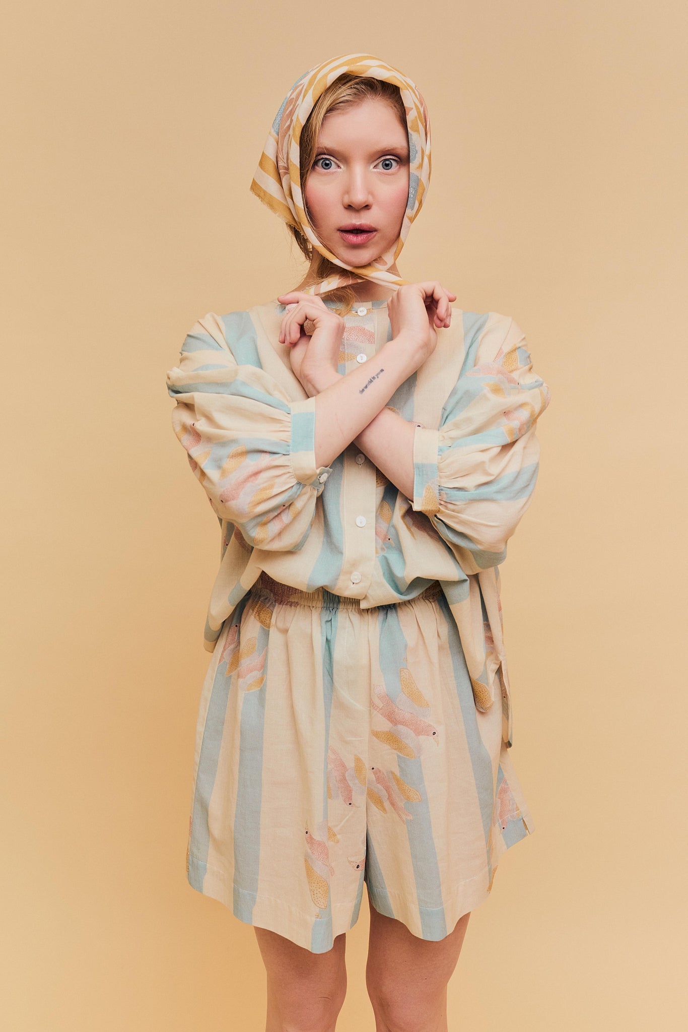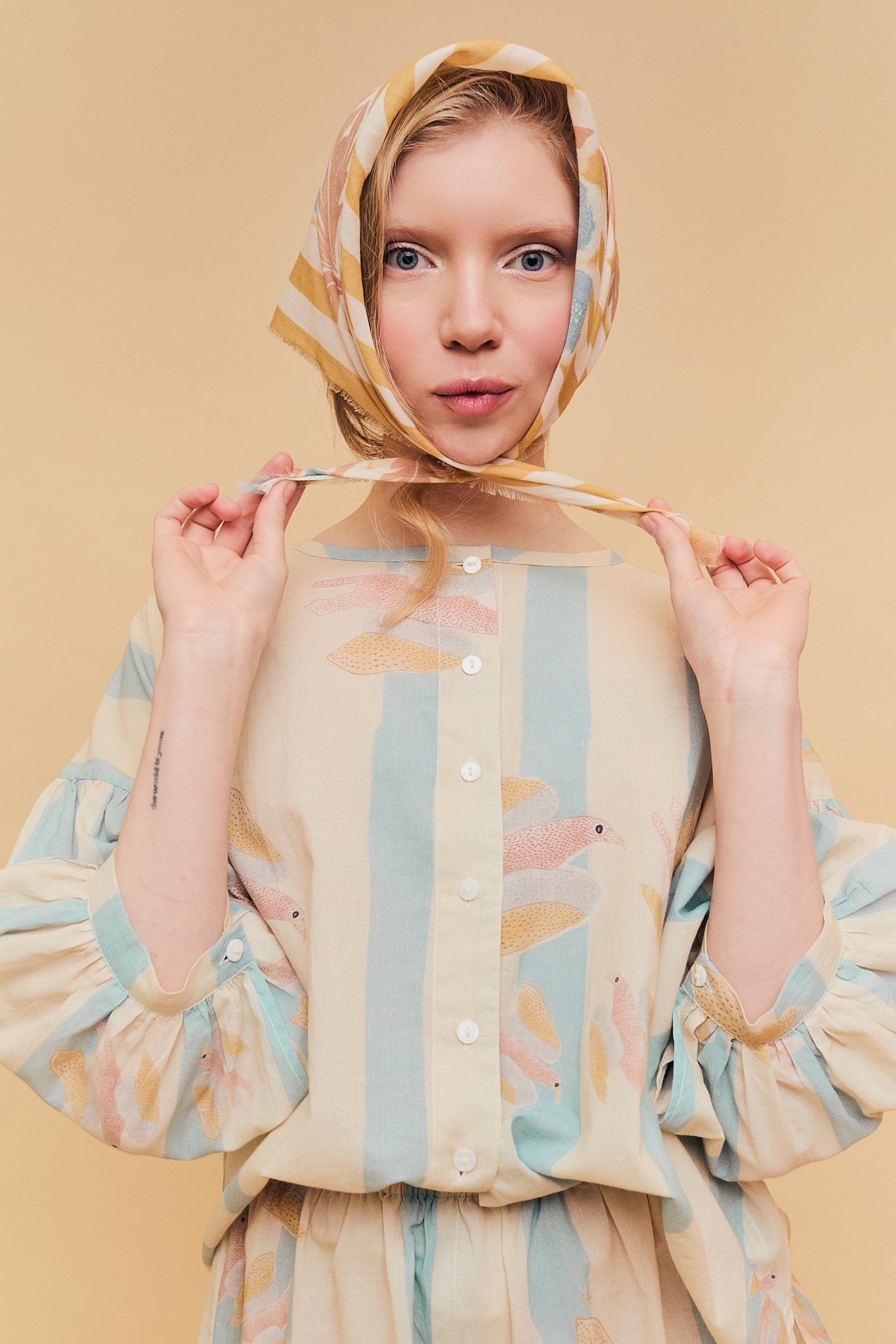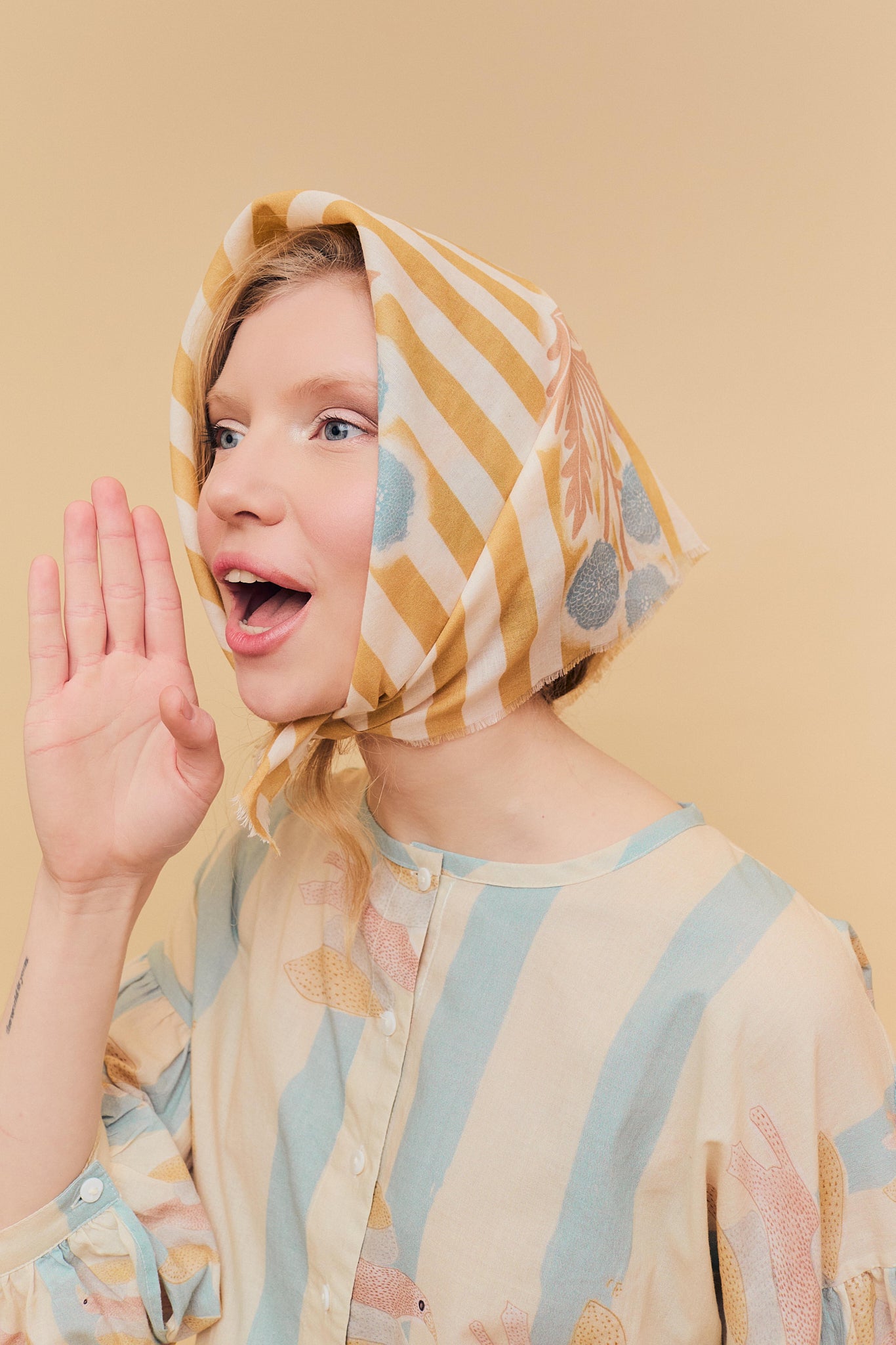 Pañuelo 100% algodón, tejido cuidadosamente seleccionado y con estampado realizado a mano. Perteneciente a la Colección "Spring-Summer 26"