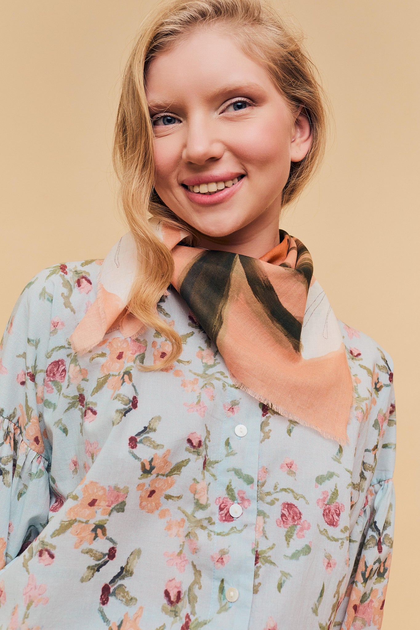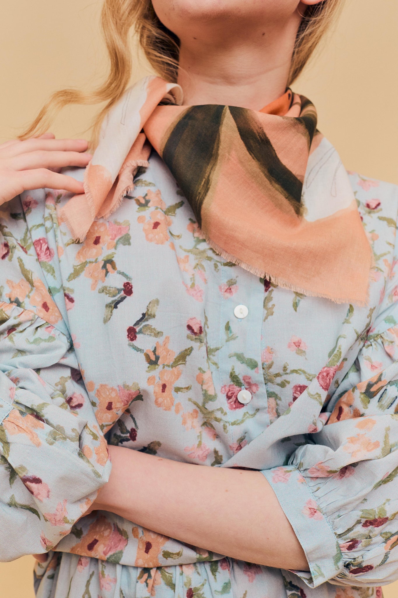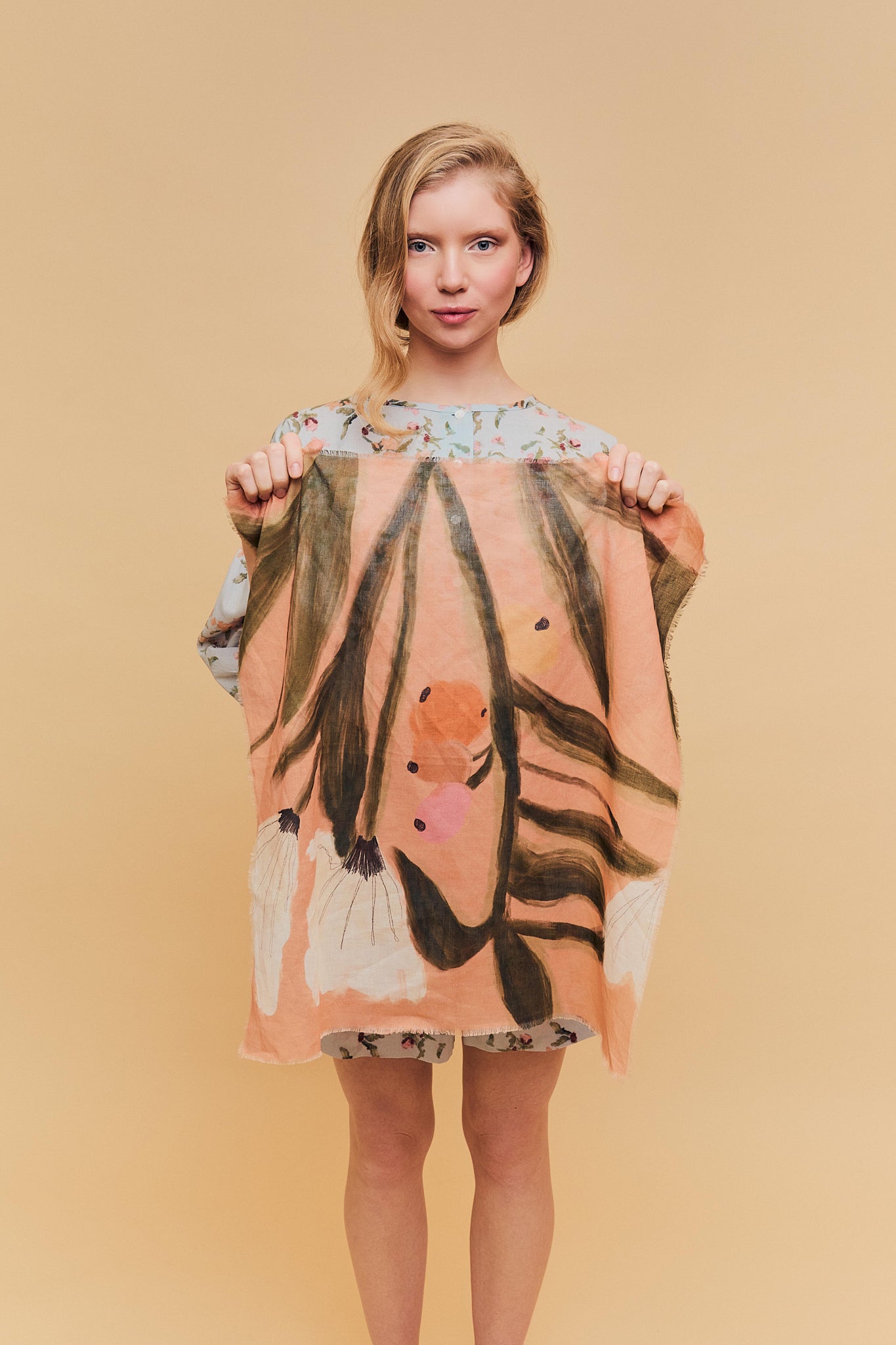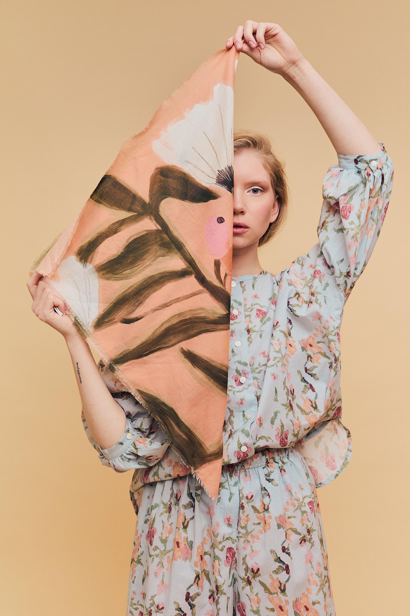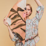 Pañuelo 100% algodón, tejido cuidadosamente seleccionado y con estampado realizado a mano. Perteneciente a la Colección "Spring-Summer 26"