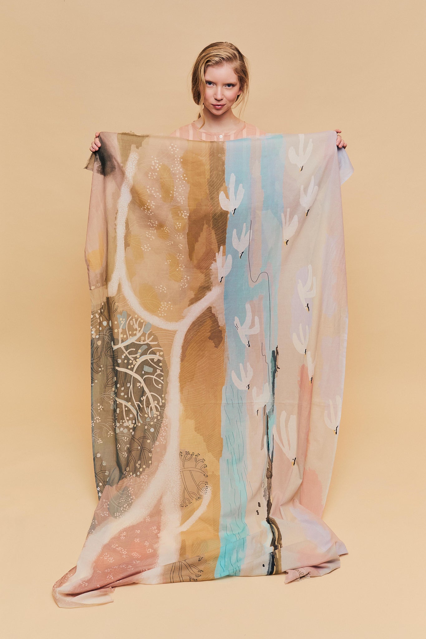Pañuelo 100% algodón, tejido cuidadosamente seleccionado y con estampado realizado a mano. Perteneciente a la Colección "Spring-Summer 26"